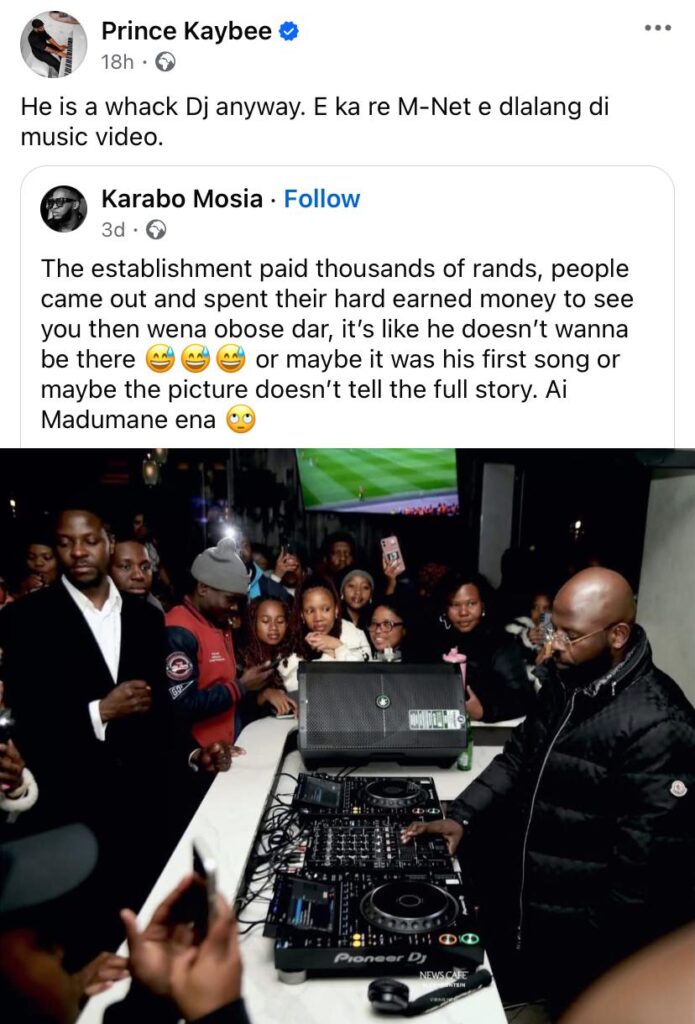 While the original post offered a mild critique and some possible explanations for the perceived lack of energy, Prince Kaybee’s direct and blunt response has once again positioned him in the spotlight for a public feud. This incident highlights the ongoing tensions and competitive nature within the South African music scene, where social media has become the primary battleground for professional rivalries.